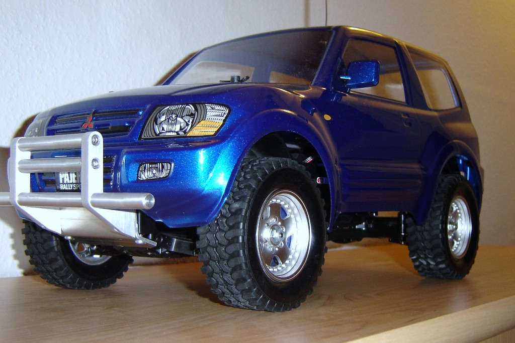 Der große Sinneswandel... Ich habe mich entschieden, den Touareg in die Ecke zu stellen. (...nur die Karosserie...) Statt dessen wird nun auf kurzen Radstand umgebaut. Das einzige Material, welches man dafür benötigt ist die kürzere Antriebswelle. Die Karosserie des alten XB- Pajero (Lexankarosserie) soll es werden, ist auch tatsächlich noch lieferbar! Karosserie, Spiegel und Dekorbogen habe ich bestellt. Des weitern stehen noch der verstärkte Servosaver, eine Domstrebe und die hintere Versteifung aus Aluminium an. Nun heißt es warten. Bis dahin wünsche ich Euch einen guten Rutsch ins neue Jahr!
